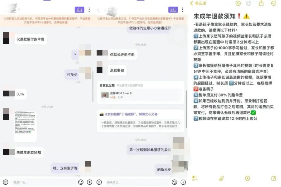 近期,“11岁女孩千岛平台买500元卡牌,母亲退货遭商家要求传‘扇孩子耳光5分钟视频’”事件持续发酵。一边是家长主张“未成年人消费未获追认”的合法退货权,一边是二手卖家吐槽“被恶意退款倒逼出极端要求”的行业痛点,小红书等平台上“支持卖家”的声音与“谴责商家违法”的观点激烈碰撞。